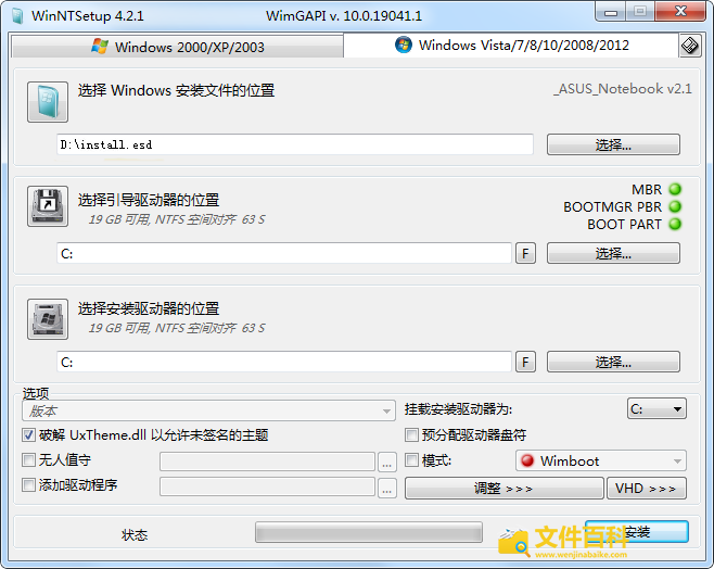 WinNTSetup系统安装器可以使用ESD镜像文件安装系统, 建议在Windows PE环境下使用。如果是安装双系统的话,也可以直接在Windows系统下运行WinNTSetup,如Win7或者Win8系统下,安装Win10到非系统盘。